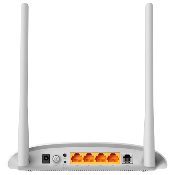مودم روتر ADSL2+ مجهز به 1 پورت RJ-11 برای اتصال کابل تلفن و 1 پورت اترنت RJ-45 WAN/LAN جهت متصل کردن کابل شبکه است؛ همچنین این مدل دارای 4 پورت RJ-45 اترنت برای اتصال باسیم بوده که اطلاعات را با سرعت 10/100Mbps انتقال می دهند. مودم دو آنتن تی پی لینک برخوردار از تعدادی کلید فیزیکی بوده که در قسمت پشتی مودم تعبیه شده اند؛ کاربران می توانند از دکمه ON/OFF برای خاموش / روشن کردن مودم استفاده کنند؛ دکمه WPS به کاربر این امکان را می دهد تا بدون وارد کردن رمز عبور به روتر متصل شود و همچنین دکمه WIFI برای خاموش / روشن کردن اتصال بی سیم کاربرد دارد.